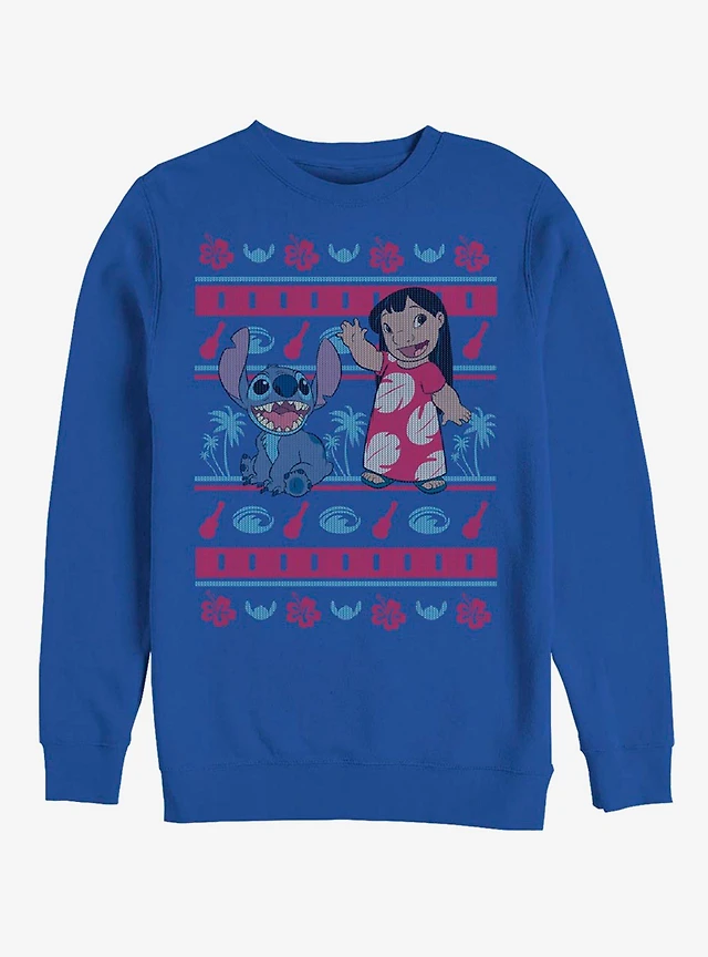 Disney Lilo & Stitch Holiday Hawaiian Pattern Crew Sweatshirt