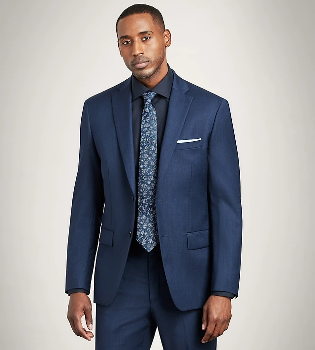 Modern Fit Navy Plaid Suit Pants