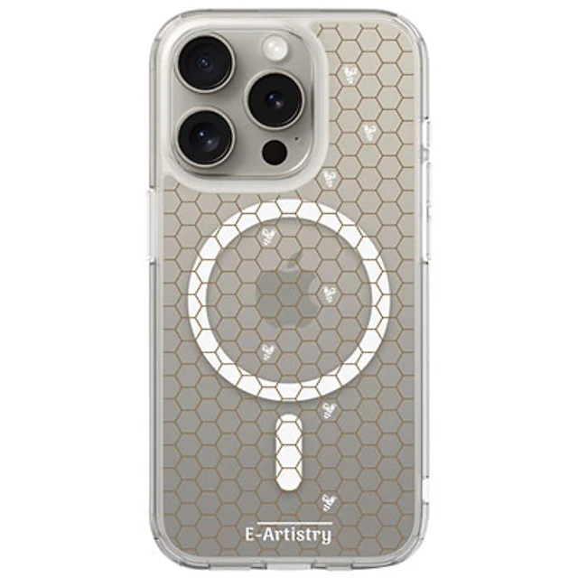 E-Artistry Signature Honeycomb Fitted Hard Shell Case w/ MagSafe for iPhone 15 Pro - Clear - White/Gold