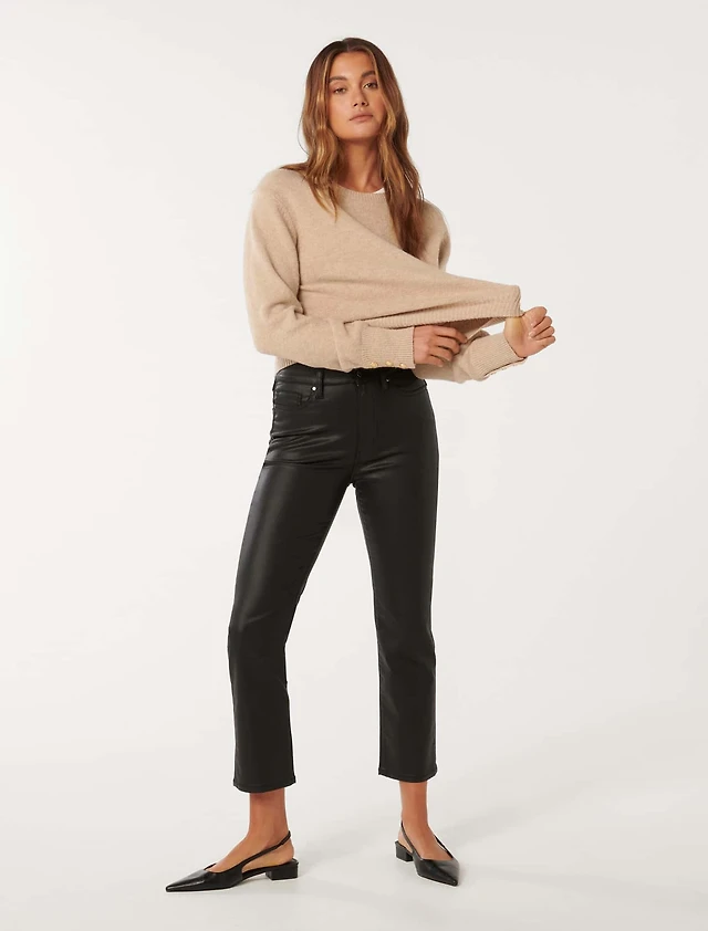 Una Vegan Leather Straight Leg Pant