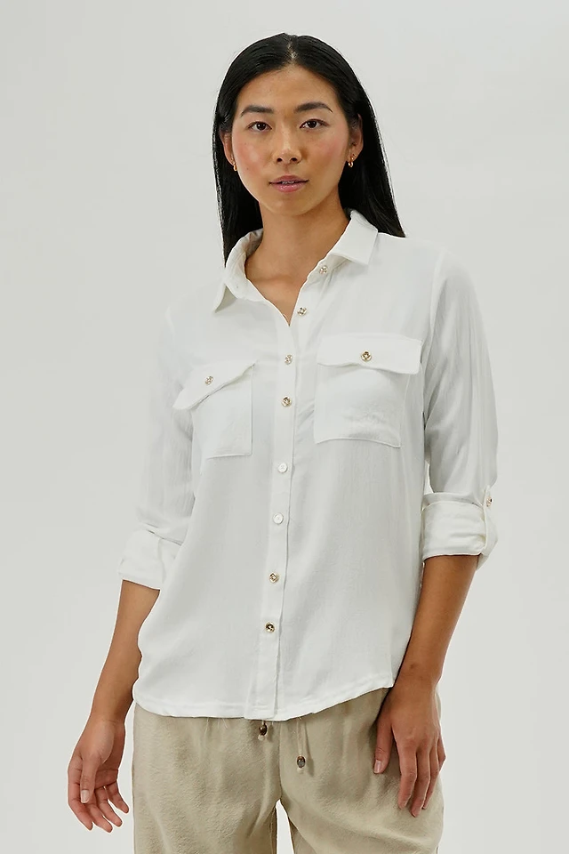 Beechers Brook Patterned Roll Up Sleeve Blouse - White