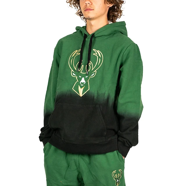 Men's FISLL Hunter Green Milwaukee Bucks Black Dip-Dye - Pullover Hoodie