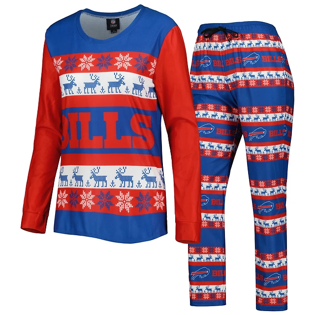 Women's FOCO Royal Buffalo Bills Wordmark Ugly Pajama Set