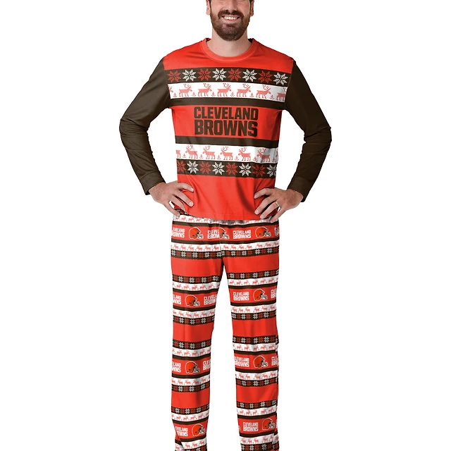 Men's FOCO Brown Cleveland Browns Wordmark Ugly Pajama Set