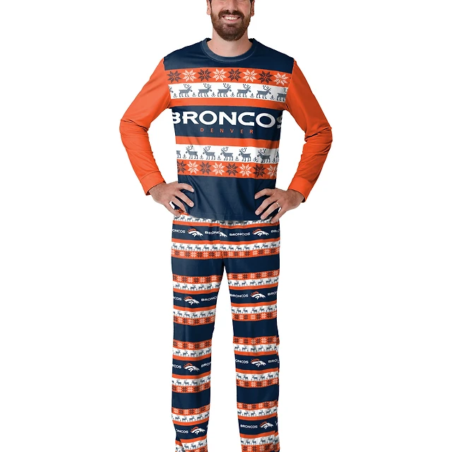 Men's FOCO Navy Denver Broncos Wordmark Ugly Pajama Set