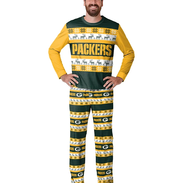 Men's FOCO Green Bay Packers Wordmark Ugly Pajama Set