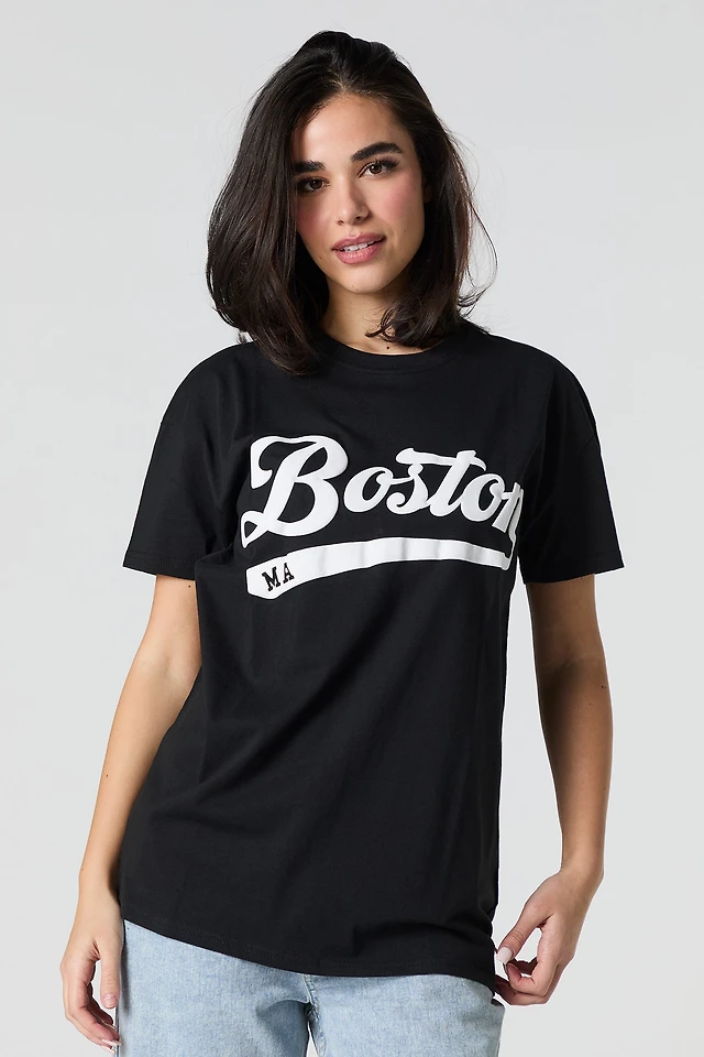 LA Twill Embroidered Off Shoulder Fleece Sweatshirt