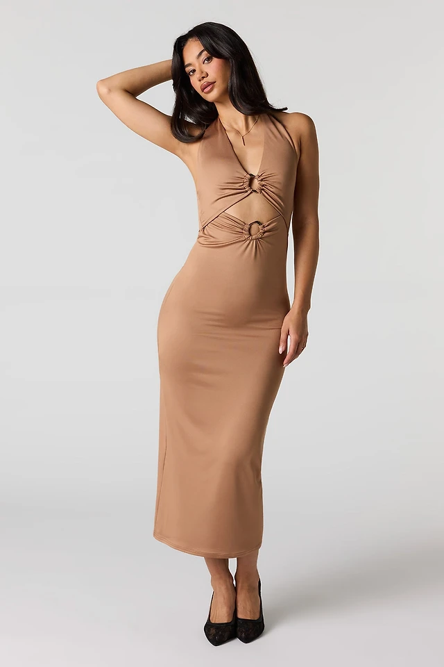 Contour Metal O-Ring Midi Halter Dress