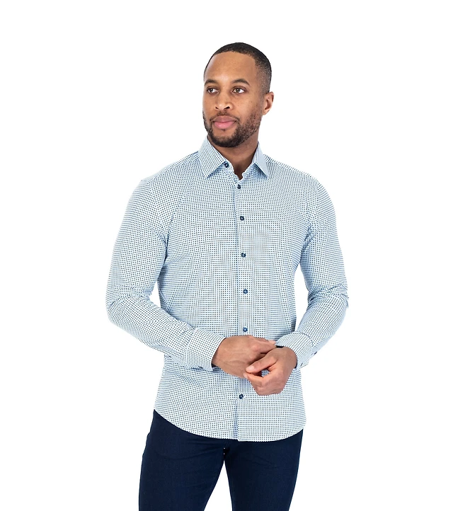 Performance Stretch Diamond Pattern Dress Shirt - Blue