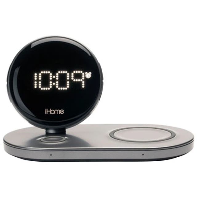 iHome iW23B 3-in-1 Alarm Clock with Magnetic Wireless Charging & USB-A/USB-C Ports