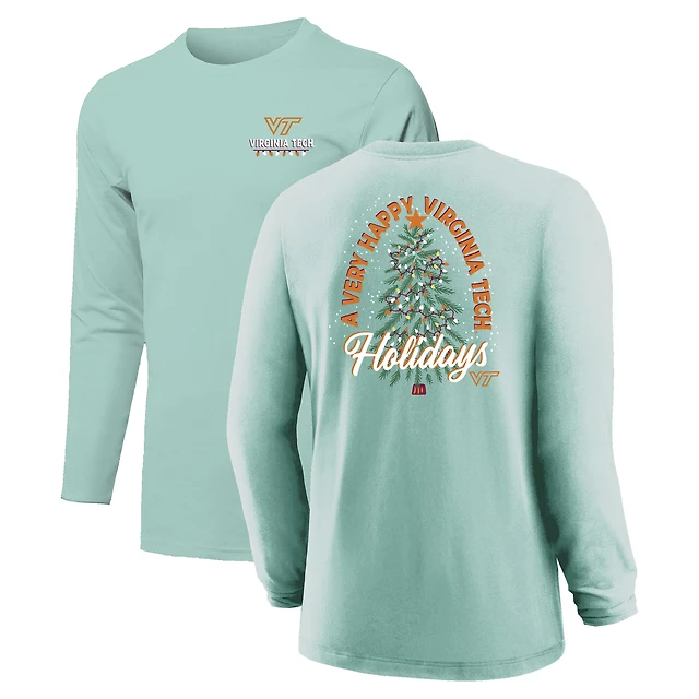 Youth Light Green Virginia Tech Hokies Merry Christmas Tree Long Sleeve T-Shirt