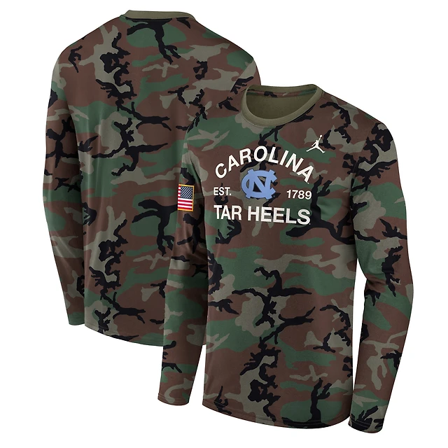 Men's Jordan Brand Camo North Carolina Tar Heels 2025 Military Appreciation Legend Dri-FIT Long Sleeve T-Shirt