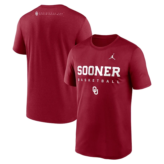 Men's Jordan Brand Crimson Oklahoma Sooners 2025 Courtside Basketball Legend Dri-FIT T-Shirt