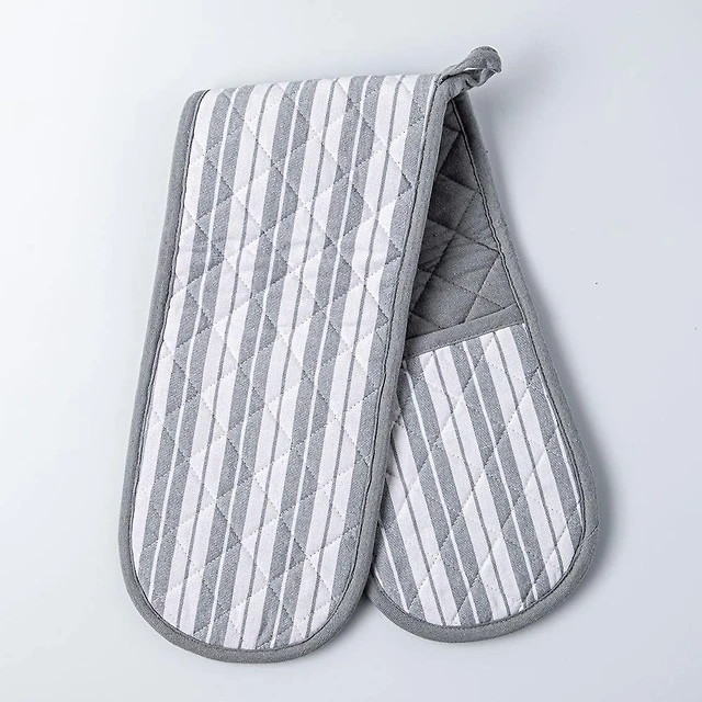 KSP Classic Stripe 100% Cotton Double Oven Mitt (Light Grey)
