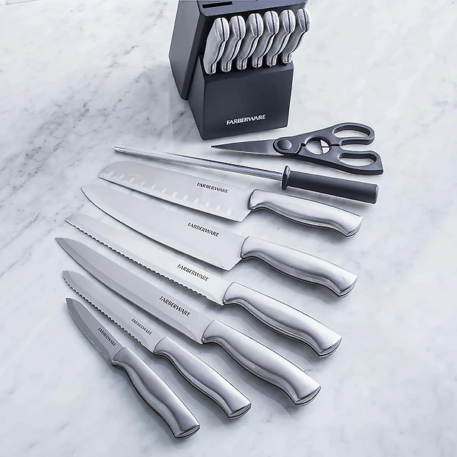 Farberware 15pc Stainless Stamped Wood Knife Set (Charcoal)