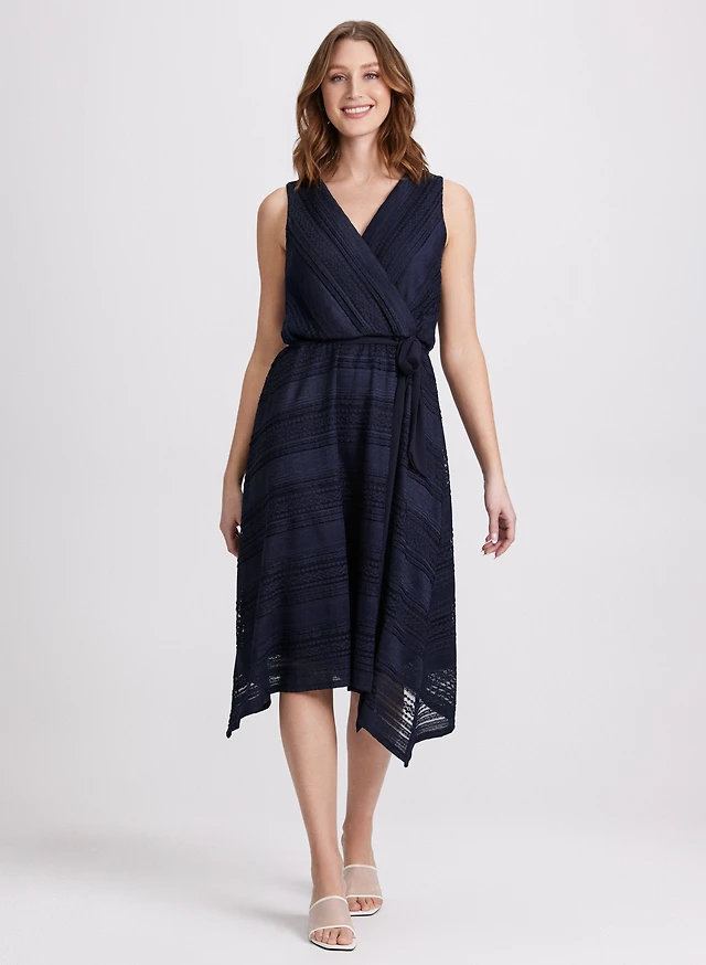Crochet Trim Top & Faded Wide-Leg Jeans