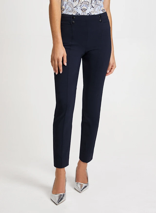 Decorative Button Striped Sweater & Slim Pull-On Ankle Pants