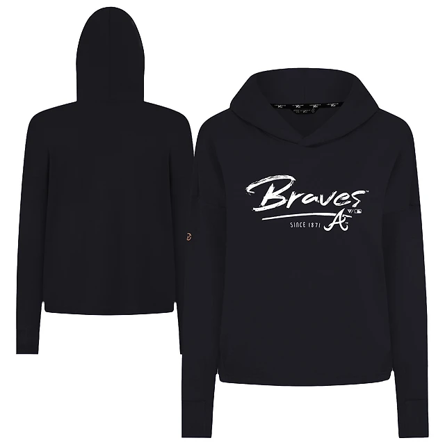 Women's Levelwear Black Atlanta Braves Accolade Sweet Express Cropped Tri-Blend Pullover Hoodie