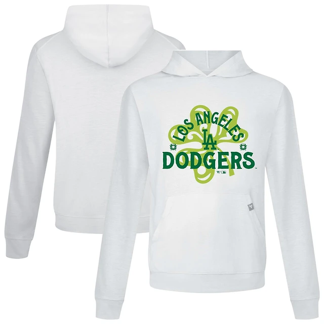 Men's Levelwear White Los Angeles Dodgers St. Patrick's Day Relay Shamrock Pullover Hoodie