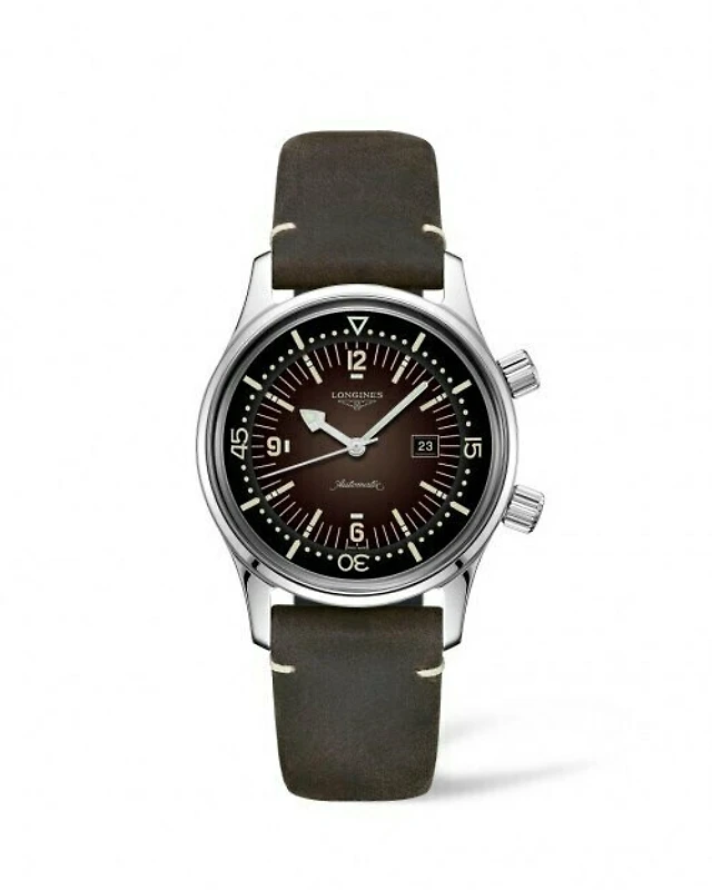 THE LONGINES LEGEND DIVER WATCH 36MM BROWN DIAL LEATHER STRAP