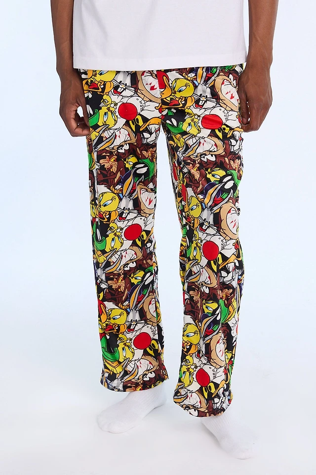 Mens Looney Tunes Fleece Pajama Pant - Black /