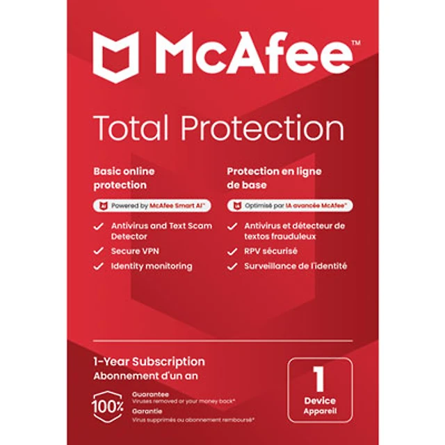 McAfee Total Protection (Windows/Mac/Android/iOS) - 1 Device - 1 Year - Digital Download