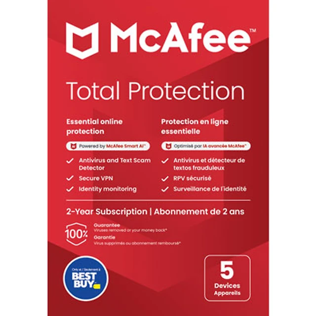 McAfee Total Protection (Win/Mac/Android/iOS/ChromeOS) -5 Devices -2 Year -Digital Download -Only at Best Buy