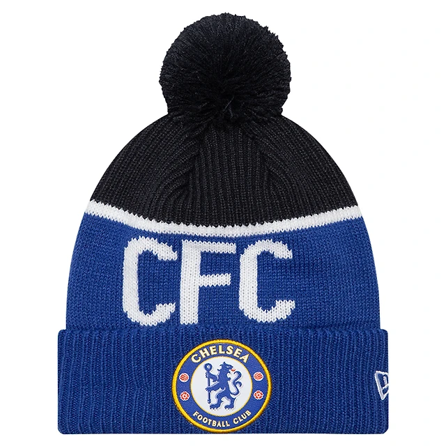 Men's New Era Blue Chelsea Sport Cuffed Knit Hat with Pom