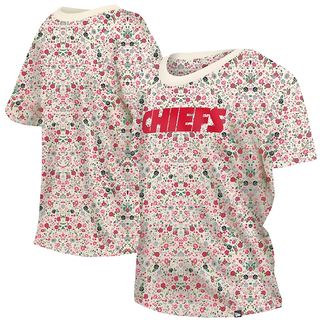 Women's New Era Cream Kansas City Chiefs Glam Game Floral Scoop Neck T-Shirt