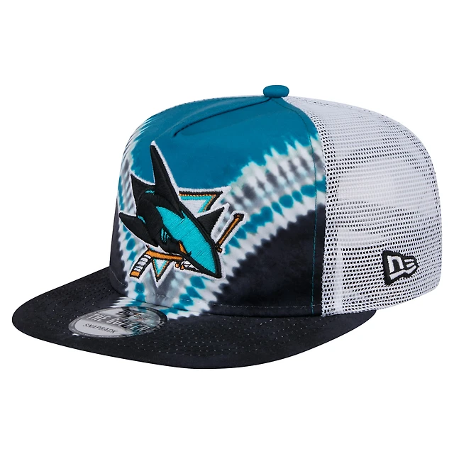 Men's New Era Black/Teal San Jose Sharks Throwback V-Dye Adjustable Golfer Hat