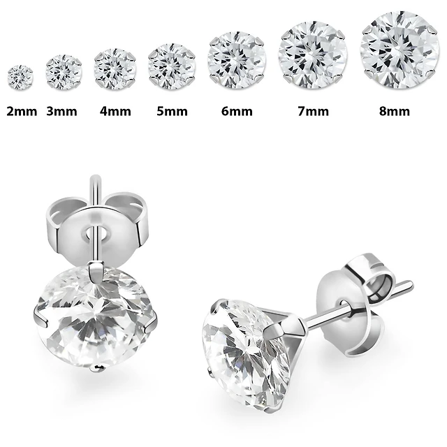 Pair of 316L Surgical Steel Flat White CZ Prong Stud Earrings