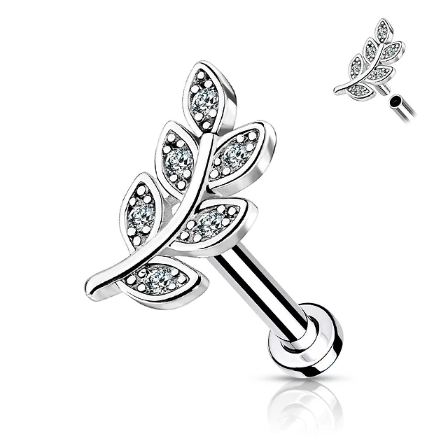 316L Surgical Steel White CZ Leaf Industrial Barbell