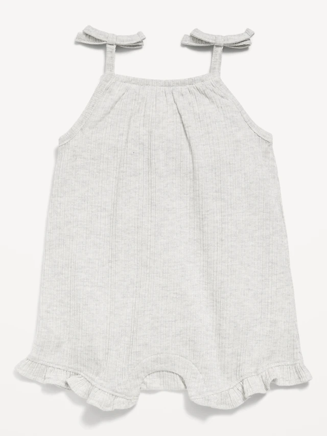 Sleeveless Tie-Bow Ribbed Romper for Toddler Girls