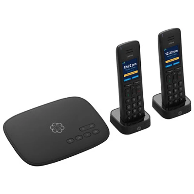 Ooma Telo Internet Home Phone Service with 2 Cordless Handsets – Black