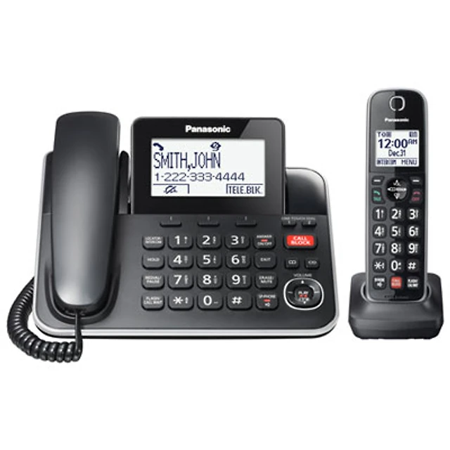 Panasonic 2-Handset DECT 6.0 Corded/Cordless Phone with Answering Machine (KXTGF872B)