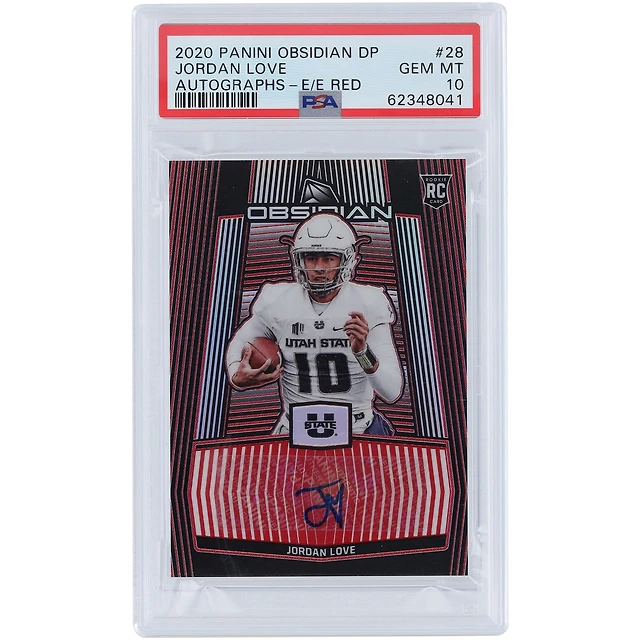 Jordan Love Utah State Aggies Autographed 2020 Panini Obsidian DP Electric Etch Red #28 #1/5 PSA Authenticated 10 Rookie Card
