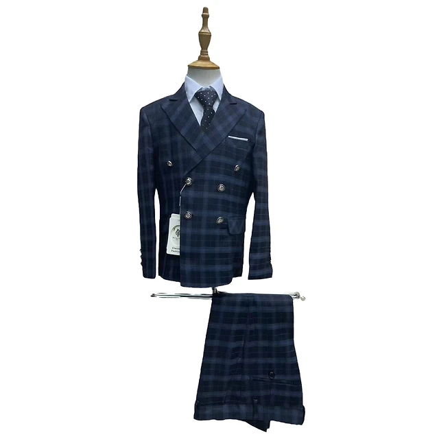 Ronaldo Grey Blue Plaid 5 pc Suit