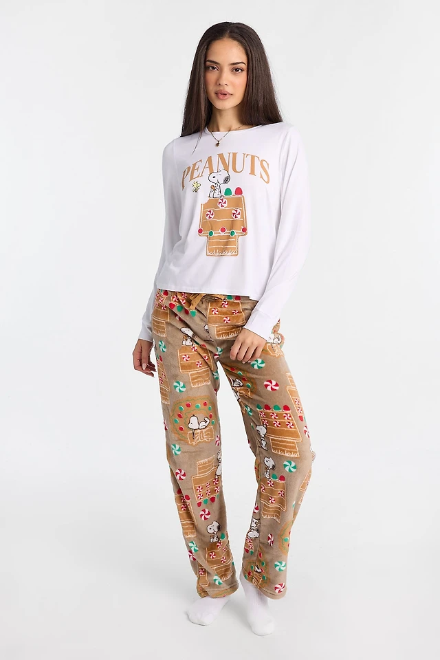 Peanuts Snoopy Gingerbread 2-Piece Pajama Set - Tan /