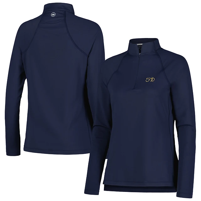 Women's Peter Millar Navy THE PLAYERS 50th Anniversary Perth Performance Raglan Quarter-Zip Top