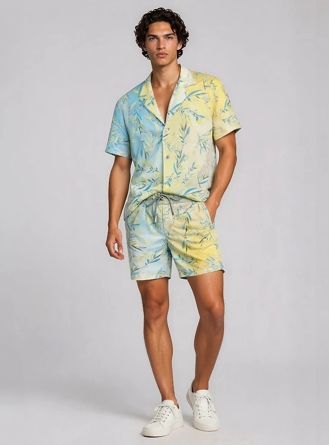 MICHAEL | 4 Way Stretch Chest Pocket Shirt With Watercolor Leaves Prin