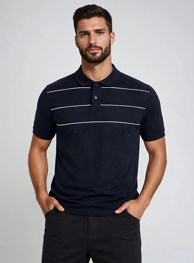 Tonal Stripe Polo - Navy