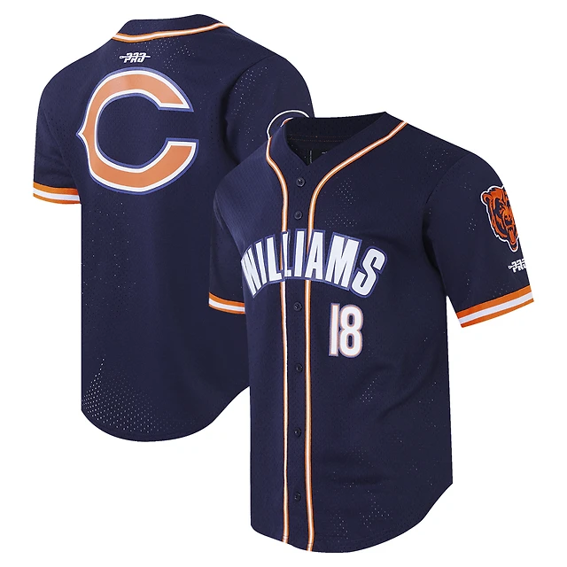 Men's Pro Standard Caleb Williams Navy Chicago Bears Mesh Button-Up Baseball Jersey