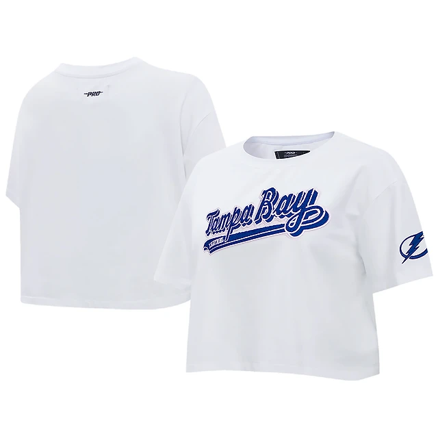 Women's Pro Standard White Tampa Bay Lightning Boxy Script Tail Cropped T-Shirt