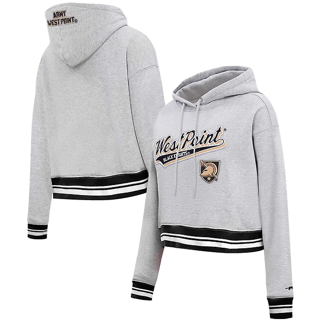Women's Pro Standard Heather Gray Army Black Knights Script Tail Fleece Cropped Pullover Hoodie