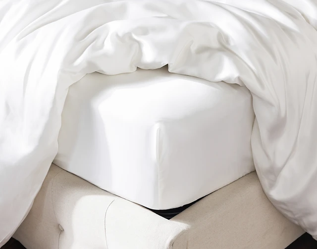 Verve Silk Blend Fitted Sheet, White, Queen