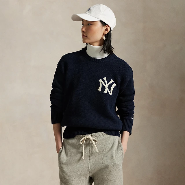 Polo Ralph Lauren Navy/White Yankees Short Sleeve Cable Knit Sweater