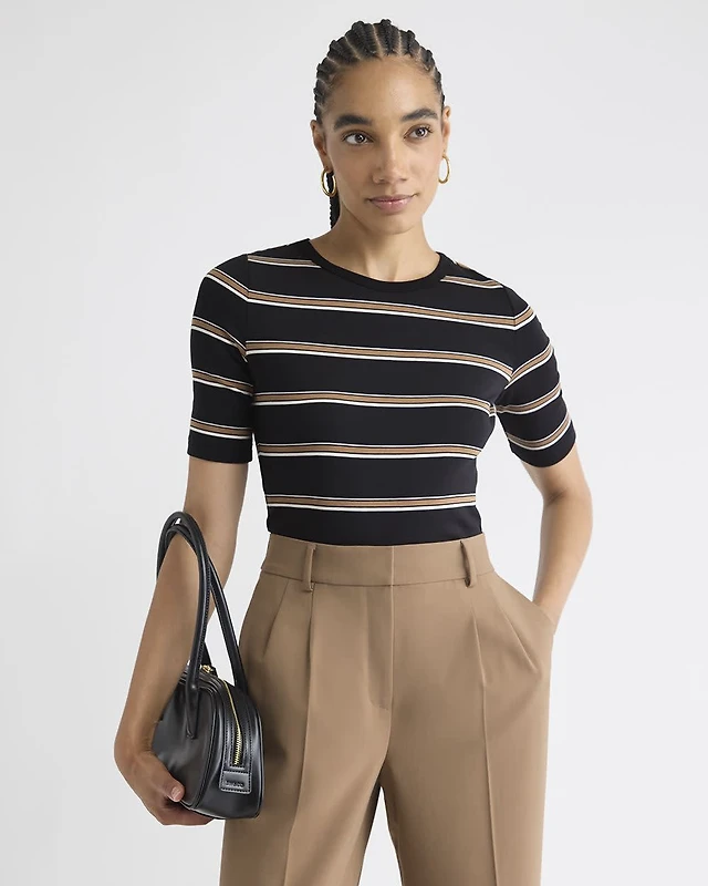 Luxe Knit Long-Sleeve Crew-Neck Fitted Ribbed Tee