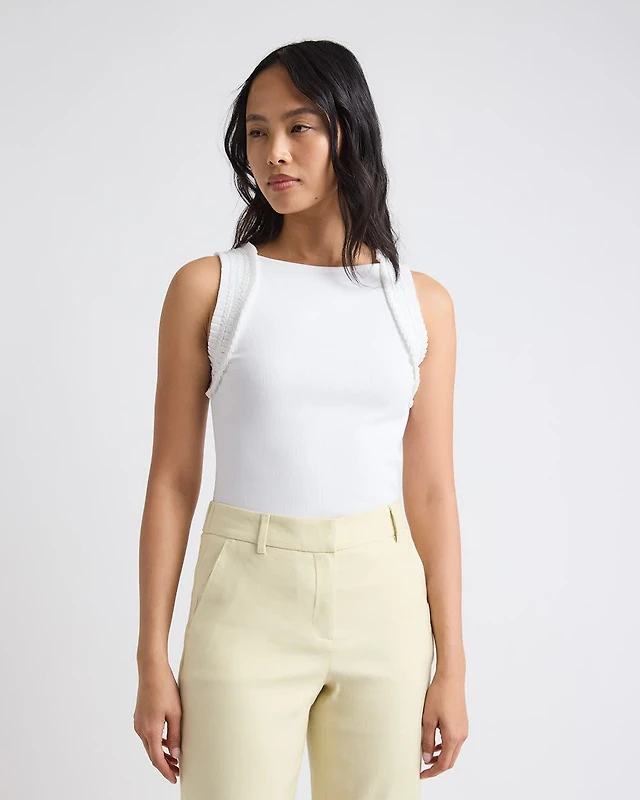 Sleeveless Crew-Neck Ribbed Buttoned-Down Top