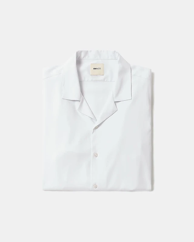 Short-Sleeve Open-Stitch Shirt with Camp Collar
