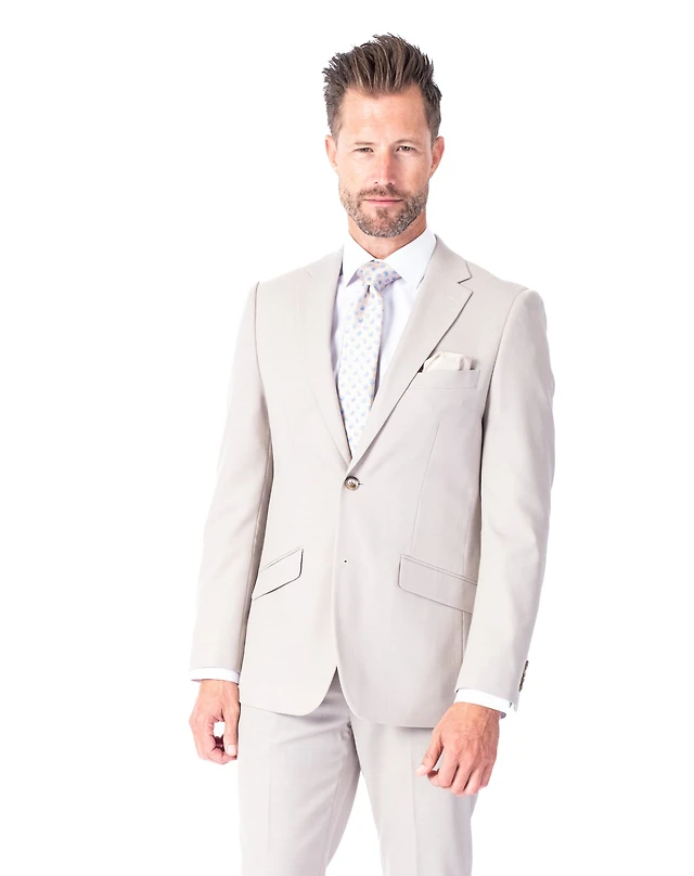 Extreme Slim Fit Wool/Poly Stretch Textured Suit - Sand